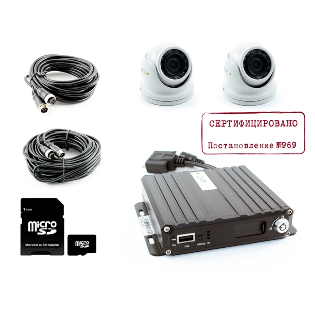 Комплект видеонаблюдения для маршрутного такси, отвечающий требованиям постановления Правительства РФ от 26 сентября 2016 г. № 969 "Об утверждении требований к функциональным свойствам технических средств обеспечения транспортной безопасности и Правил обязательной сертификации технических средств обеспечения транспортной безопасности" и включает в свой состав следующее оборудование: